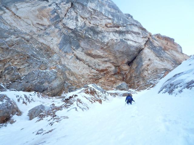 Spodnja bližnjica tokrat uspešna - sestop mimo vstopa v Nemško skozi "žrelo" je bil v danih (k sreči neplazovitih) razmerah hiter za razliko od nedavnega motoviljenja preko rušja