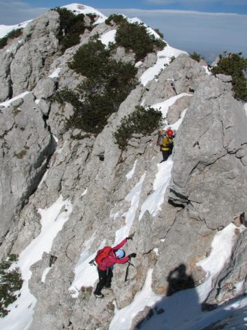 Sedaj pa tehnično nekoliko bolj zahteven del. Plezalna stopnja definitivno II v skali!