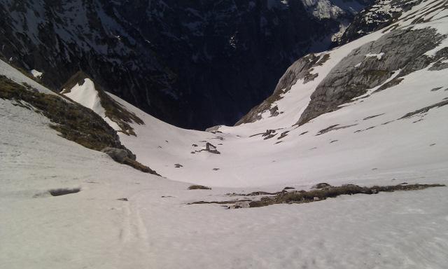 Od tukaj pa samo še navzdol. Sneg je bil južen ampak ne čisto gnil in se je dalo kar uživat