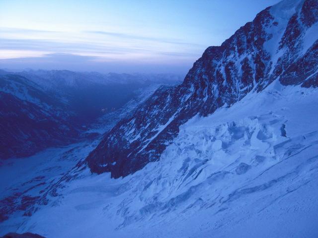 Glocknerkees in daleč spodaj večerni Heiligenblut