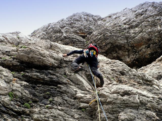Primoža so na koncu bolele noge in tko je tud prav, ker v tako podrti skali je treba težo bolj na noge prenašat.