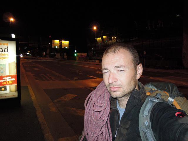 )) Rogljiček ob kavici na jeseniški pumpi sploh še ni bil v vsakodnevni jutranji akciji: "Eh gospod, pol evra velja šele od 4h naprej!". Ampak vsakodnevno gužvo v vratih sva pa prehitela in bila ob svitu pod steno. oz. kot pravi Gost, ob 3h al 6h, isti ti je to šmorn, oboje sred noči...