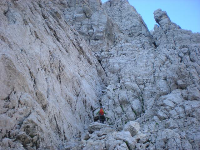 Na vstopu...Odločitev je bila, da prvi raztežaj plezava nenavezana