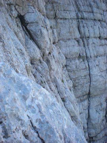 Pogled na preplezano drugo prečko v levo, ki je malce težja in daljša.