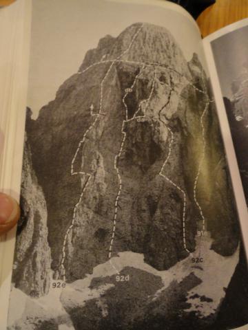 Smer Krobath-Metzger je pod številko 92c - slika je iz Buscainijevega vodnika, katerega sva dobila kar v koči Pellarini.