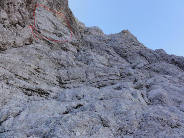 ki te privede do položnejšega sveta in orientacijske zanke: pa kaj ni tale bela plošča tisti Hlebec in zakaj vse naveze plezajo na raz desno, če naj bi bil začetek rampe po Miheličevo pod Hlebcem v levo? Še dobro da naju je prehitel Štuli s sinom in celotni četici pokazal pravo smer pod Hlebcem. Tnx Štuli!