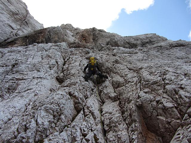 Eden od strmih raztežajev, tu sva našla tudi en star klin z obročkom.