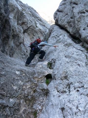 Dostop je po nemarkirani poti in ker sva zgrešila pot sva si dostop malce popestrila z eno III za ogrevanje
