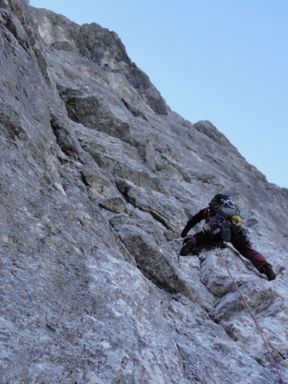 V tem delu se zdi Miheličeva skica ne povsem točna - kilne in lepe prehode sva našla desno in ne levo od strehce navzgor