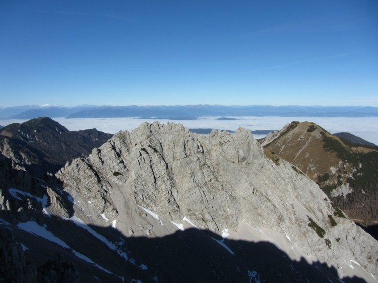 No, tole pa je naš 1. del grebena kamor smo namenjeni. Na sliki se vidi greben Krkotnik-Celovška špica