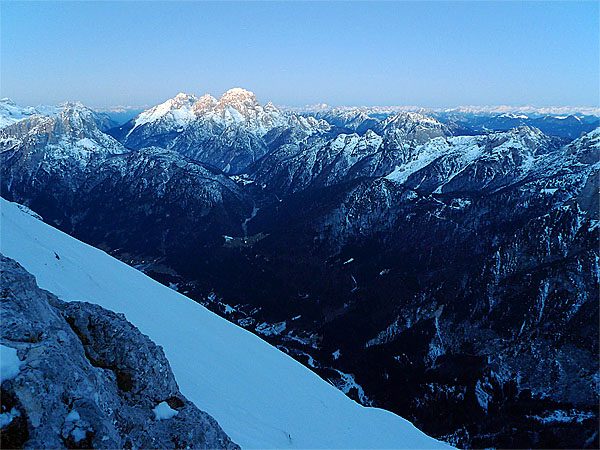 Log pod Mangartom z Višem in Montažem v ozadju ob 7:01h