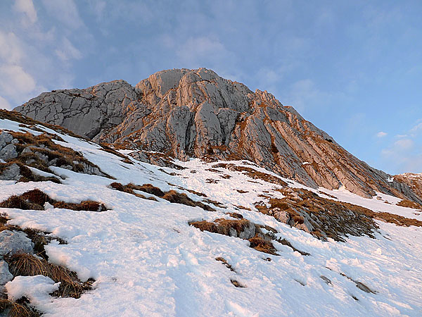 Vrh Male Krnice. Sestopal sem po travnati rampi desno od vrha