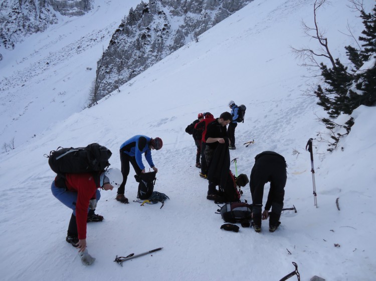 Mi tečajniki smo strašno pridni, kr sami znamo že dereze namontirat.