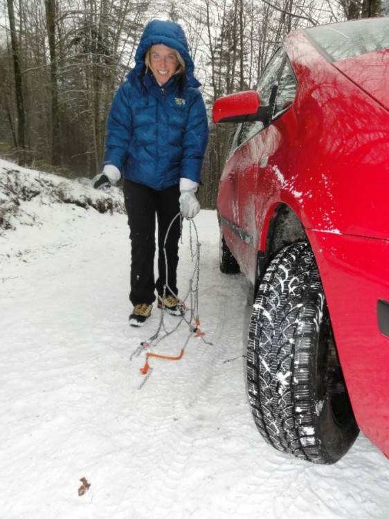 V nedeljo pa sva se z Alenko kljub pomislekom glede razmer podala proti Tomazinovi - a le do prve strmine... strgana ketna sredi klanca nama je nakopala kar precej sitnosti. Hvala štirim požrtvovalnim Rašičanom in končno njihovemu avtu da sva nabavla nove ketne. Hm, višja sila? Luciferjevi kremplji in zamera ali pa poseg s svetle strani? (Rašičani so kasneje namreč obračali pri pohodu proti Kukovi špici zaradi sumljivo napihanega snega...)
