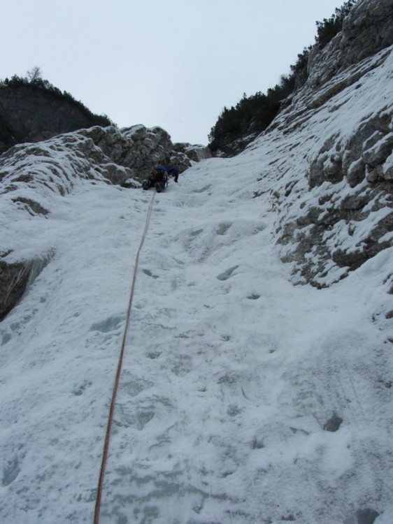 Timing je bil super, po 4 navezah sva bila kar takoj na vrsti. Spodaj dva lažja in že nadelana raztežaja