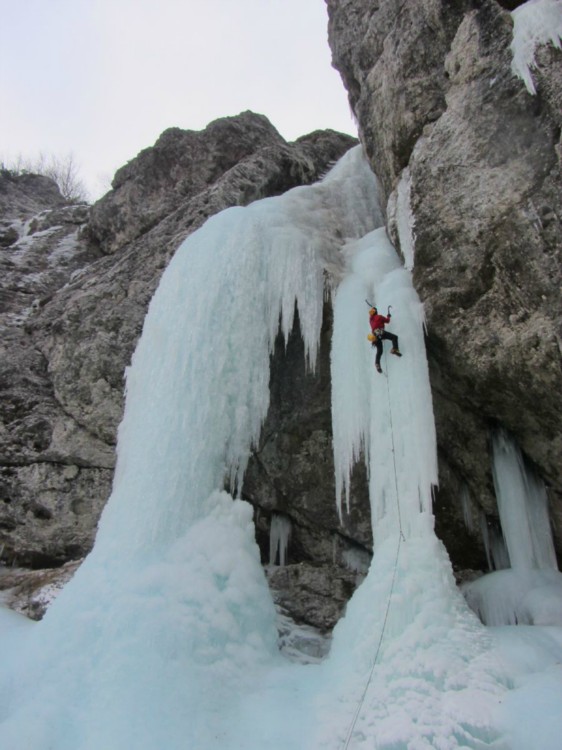Medtem naslednja naveza naskoči ožjo svečko - hm, deluje trše, ma če je zdržala njiju, bo pa tud naju! (takrat še nisva vedela niti opazila, da je dan prej enemu rašičanu med plezanjem ta sveča počila)