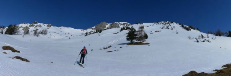 Mi smo najboljši čas za spust sicer zamudili za kako urico ampak še vedno uživali v čudovitem firnu, ko je vijuganje po nekaj zgornjih cm odjenjanega snega na trdni predelani podlagi pravi užitek. Čisto spodaj je sneg že zelo južen ampak še vedno je pa sneg