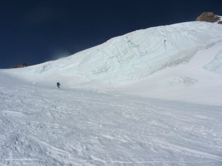Sneg je bil vsaj za nas počasnele pretežno dober, ravno prav popuščen, le na vetrovnih predelih so bila taka skorjasta rebra