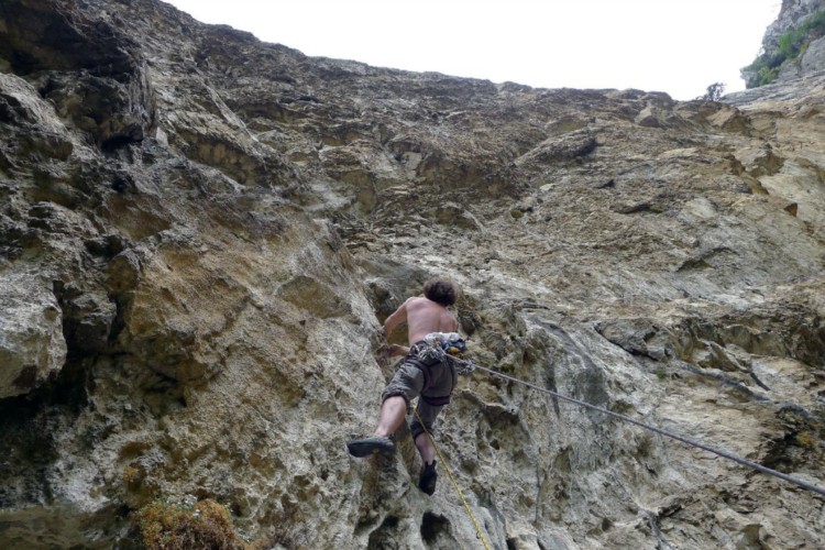Naprej s še zabutelkanimi rokami v krajši previsni buhtel