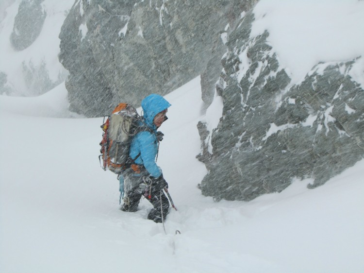 S plezanjem tako ni bilo nič, čakal pa naju je zanimil sestop saj nisi videl 5 m pred sabo, sneg pa je prekril najine sledi prejšnega dne.