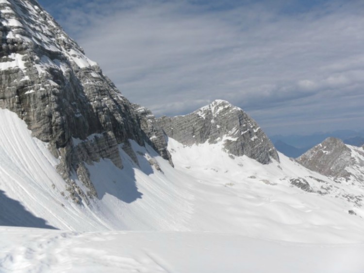 Gor je snega še dovolj, samo do tja je na žalost treba smuči nesti na hrbtu.