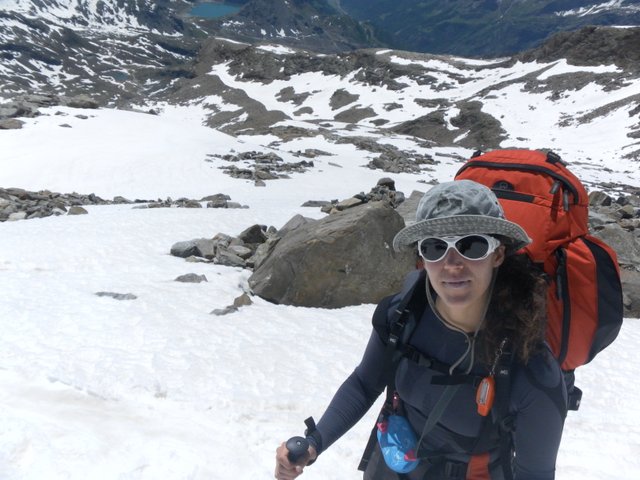 Na poti navzgor, kjer je Lucia navdušeno testirala izposojene pancarje in smučke.