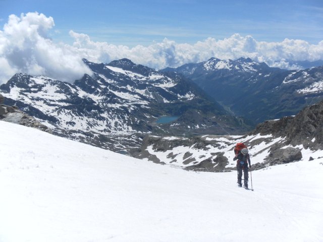 Od gondole je bilo treba priti do druge koče, Rifuggio Gniffeti. Razgledi v dolino pa dih jemajoči.