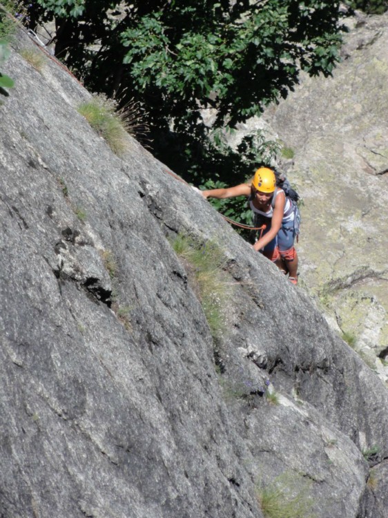 Smer La Concarde (5c+) je bila kar pravšnja za uverturo - že prvi cug platka. Ob razdalji svedrovcev 3-4 m in gladki plati najprej mal pobuljiš, pol pa greš, igra balansa, guma pa drži!