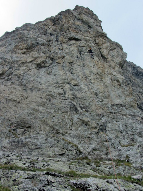 Fenomenalen dvojni cug čez tale steber, super 6b plezarija, podobno razčlenjena kot apnenc, pa dost bolj kompaktna!