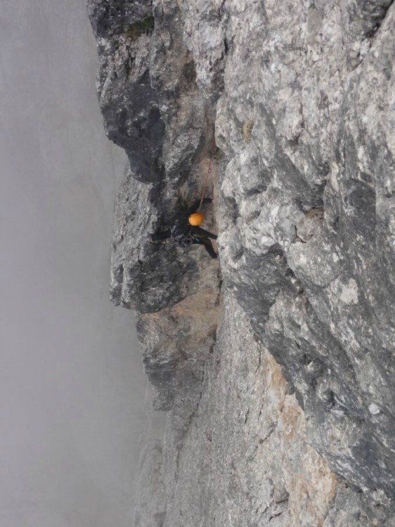 Še zadnji težji raztežaj čez strehco, spet super pleza