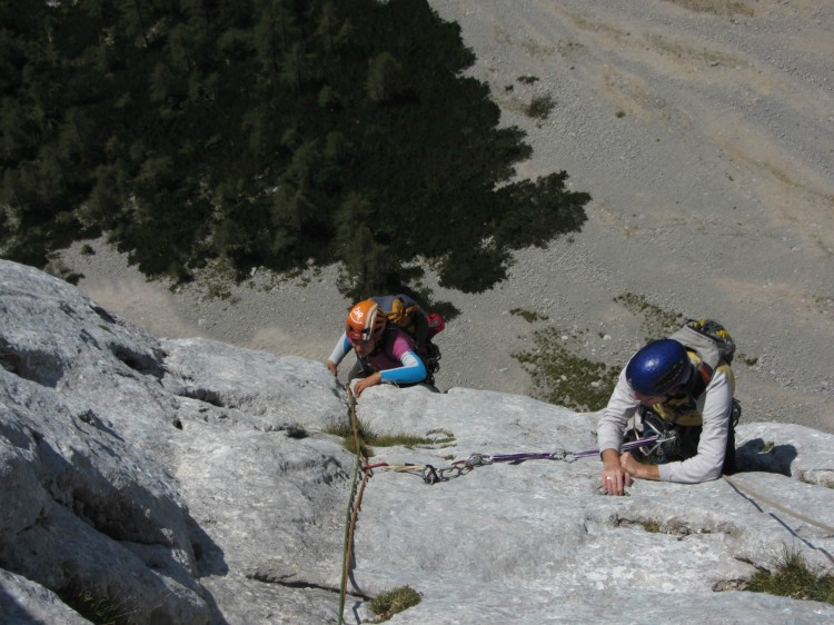 Darja izstopa iz ta težkega raztežaja smeri Tik pred dvanajsto, naveza na sliki pa je dejansko v celoti plezala navedeno smer