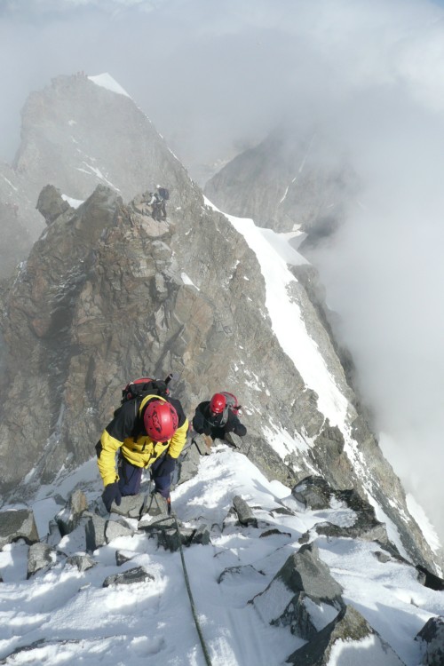 Proti vrhu, zadnji metri, v ozadju bolj siten del ture, skalni greben - gor, dol...