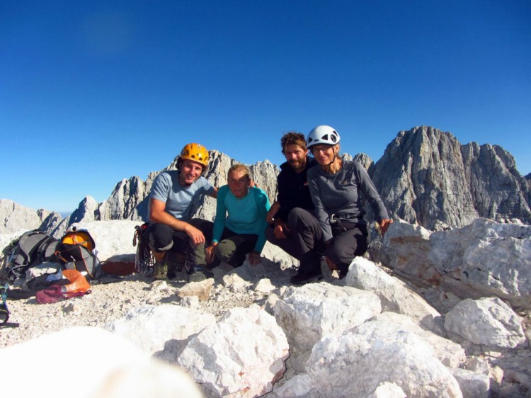 Na vrhu vsi zelo zadovoljni - lepa stena kjer se ob potrebni pazljivostjo ravno prav natelovadiš.
