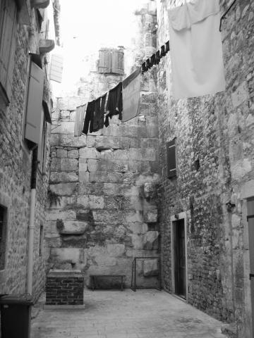 No med ulicami vidiš, da tudi v Splitu sušijo cunje kot v LJ. Mogoče pa je obešanje cunj med bloki znak dobrih sosedskih odnosov?!