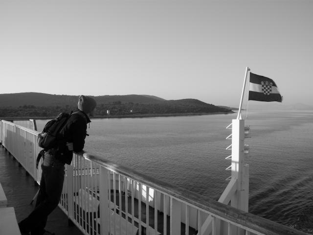 in potem na trajekt proti Hvaru. Uf kolk močno loh pihnem, še prapor na ladjici loh zaplapola