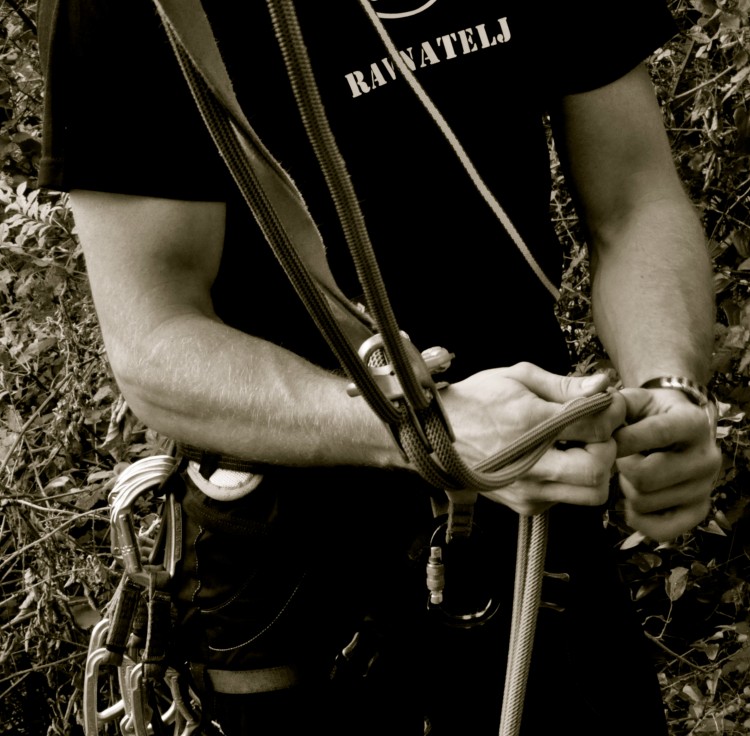 Detajl - samovarovanje pri abseilu.