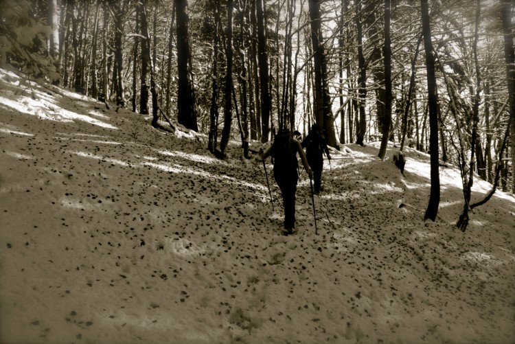 Listje odpada, mi pa se počasi prebijamo čez prvi greben nad Lešnikovim klancem.