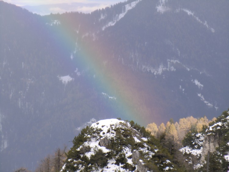 Točno tu, kjer se mavrica dotika tal, smo potem našli čudovit zaklad: ledeno skrinjo, prekrito s snegom in majhnimi, pisanimi kristalčki, v njej pa čudovite bisere, dragulje, smaragde in diamante. Žal je bilo vse vkovano v led, tako da smo morali zaklad pustiti tam...