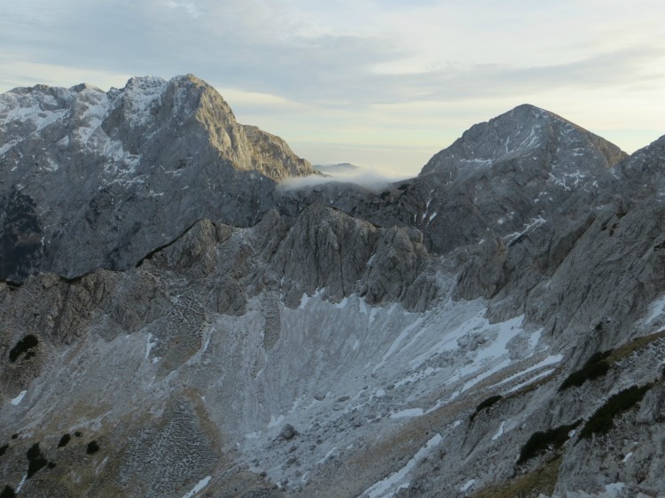 Tu nam je vzelo kar dve uri časa, dan je počasi ugašal... Na sliki vidimo čudovito krnico Latvico, v ozadju levo je Planjava, desno Brana, vmes pa Kamniško sedlo