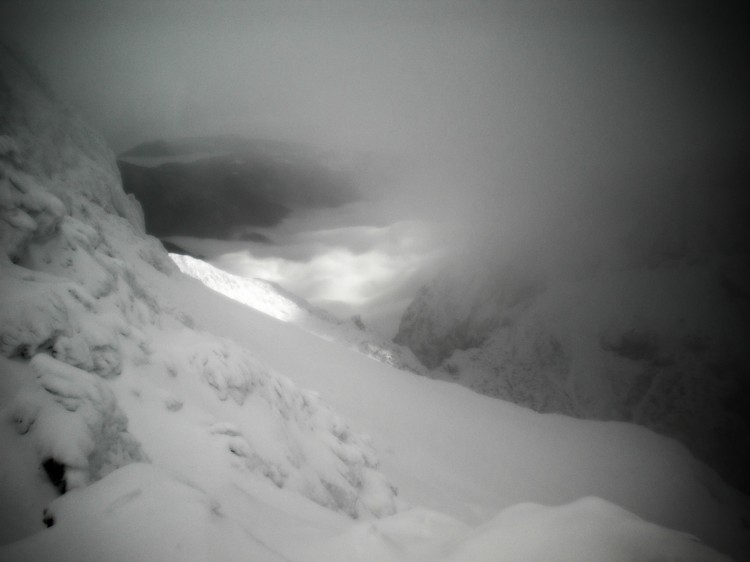 Streha je za mano. Niti slutil nisem kaj se dogaja pod Kokrškim sedlom, ki je bil danes prava drsalnica.