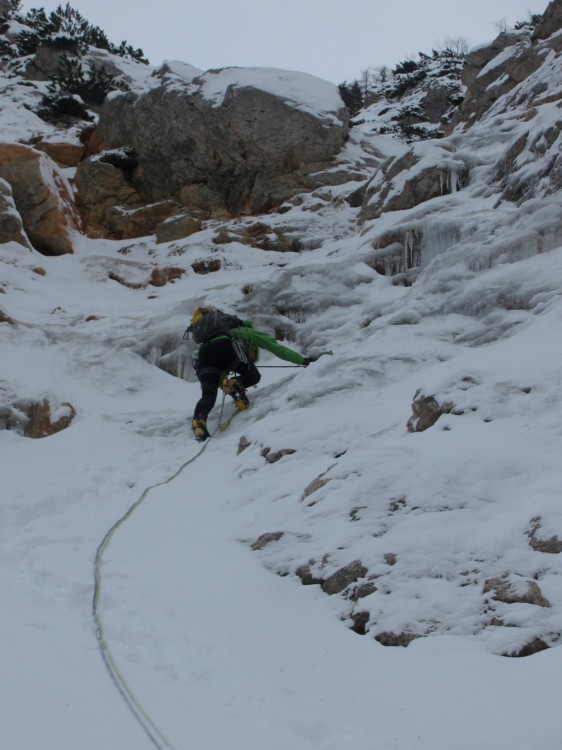 Okoliščine naju najprej pripeljejo do Smeri izgubljene rokavice, a zaradi slabega ledu obrneva in se odločiva, da greva v smer S, ki se nahaja bolj levo.