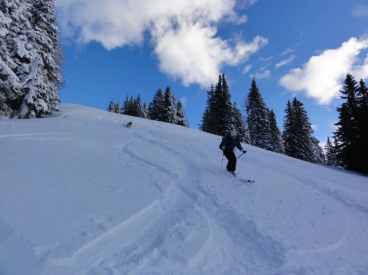 Spust po celčku - mal že spihan in kložast. Alenka, za njo Šana...