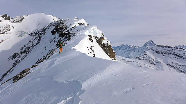 Po poledenelem razu sva nadaljevala proti vrhu. Markus s srenači, jaz brez. Bilo je napeto.
