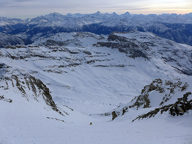 The Flanka v sosednjo dolino. 1200 spusta na pomrznjeni podlagi, od 40-44 st. naklonine