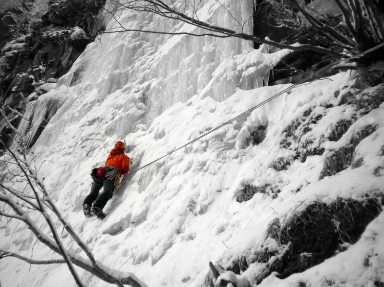 Jemček v drugem raztežaju. Najprej malo prečke, potem pa vertikala.
