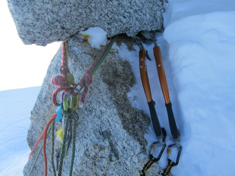 Večino smeri, ki smo jih lezli, imajo urejena sidrišča za spust. Eni prusiki so iz tega leta, eni iz tega desetletja in eni iz tega stoletja.
