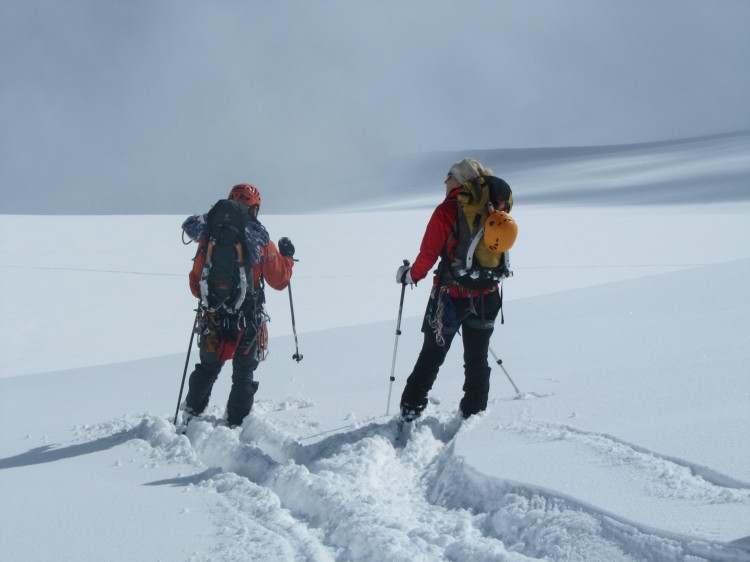 ...megla se je začela dvigat in vse je kazalo, da se nama bo z Alenko končno izpolnila želja, smučanje skozi Valle Blanche.