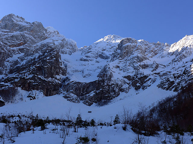 Povnova dolina je na sredi nad prepadom. Vstopamo z desne v levo, sestopamo obratno