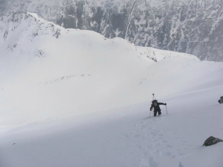 Po nekaj urah vzpona v megli po teh neskončnih flankah v hribih nad Malto so se nama ambicije malo zmanjšale. No, pa saj tudi Schwarzhorn bo v redu. Ankogel je bil še zavit v meglo, midva pa sva imela hoje že dovolj.
