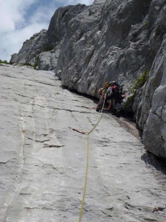 Najbolj znamenita plošča. Pleza se večinoma z opiranjem oz. podprijemi v razpoko.